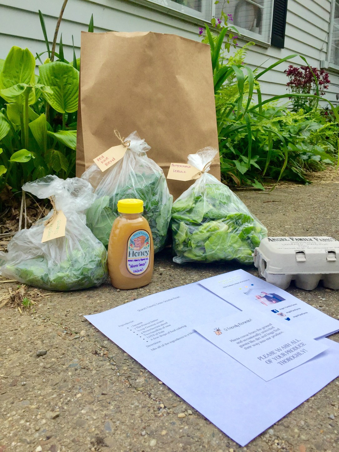 Our greens in our low tunnels started getting big and we had to time our first cutting to make sure that they were regrown so that we were ready to cut again for our CSA delivery. As the deadline approached we made sure that we had all of the supplies we needed (bags, labels, etc.) and just waited in patient anticipation for the day to come! The night before we cut the greens and sorted them into bags. We labeled honey jars and washed eggs. The next morning we packed everything up and waited patiently for each person’s pick up time. By the end of the day all of the shares were picked up and we got some really great feedback from our customers!
