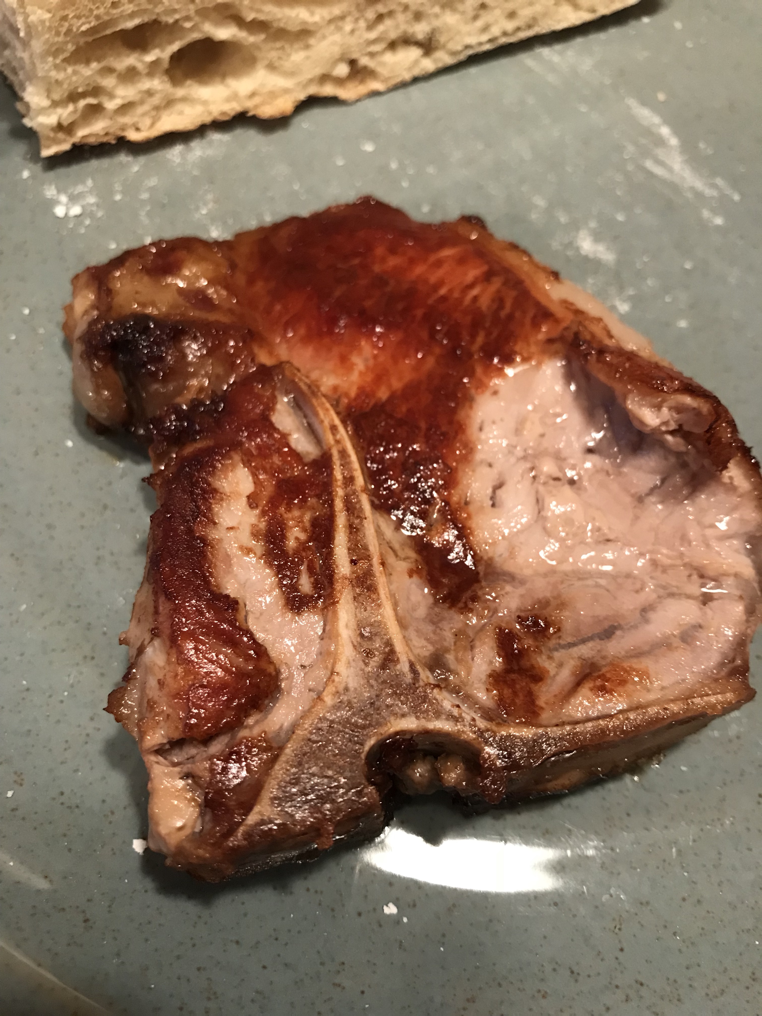 My friends, I present to you here a pork chop from a heritage breed hog.