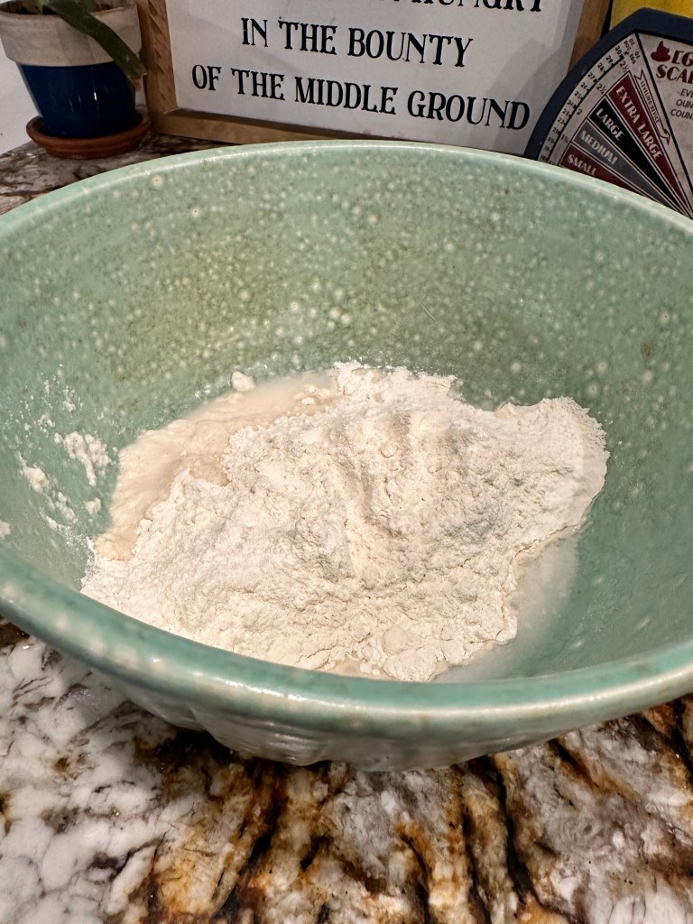 - Mix the sourdough starter/discard, water, salt, and flour together and roll into a ball.