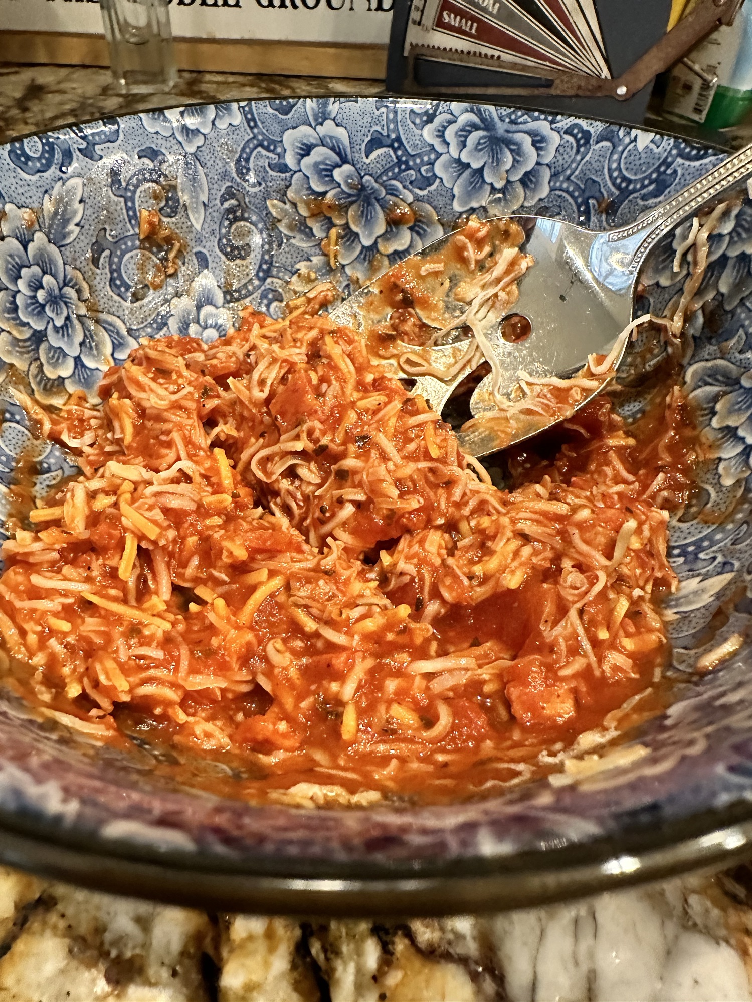 - In a separate bowl, mix together the pizza toppings, shredded cheese, and pizza sauce.